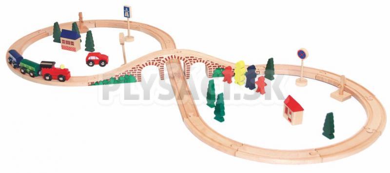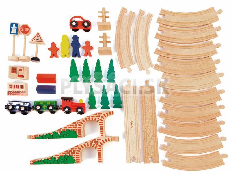 Woody Vláčikodráha osmička s elektrickou mašinou je ďalšia zo série úžasných drevených vláčikodráh. Vydajte sa s mašinkou po okruhu, prejdite most a na ceste späť Vás cesta zavedie zase pod mostom.
